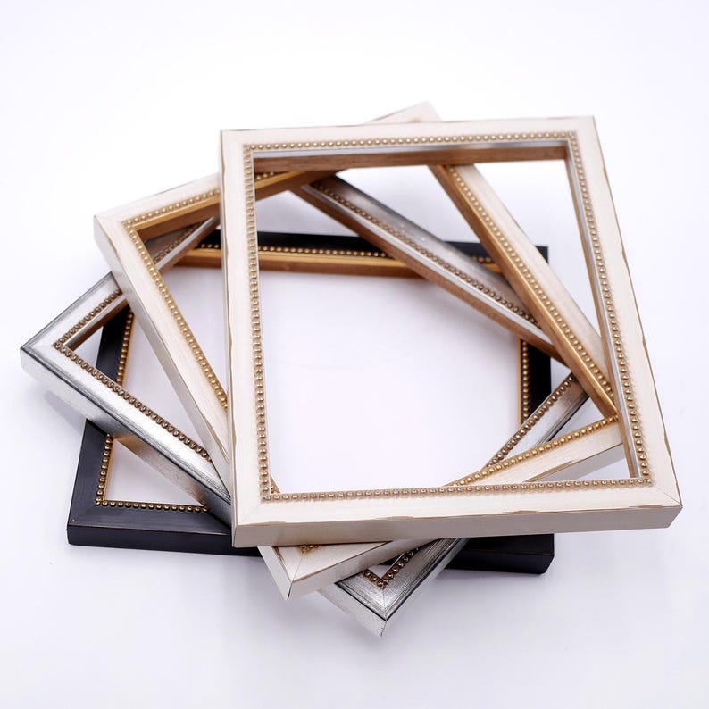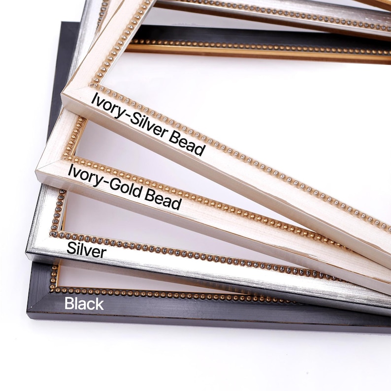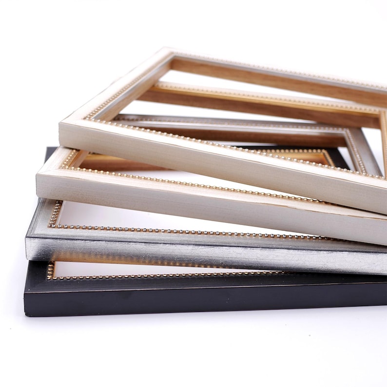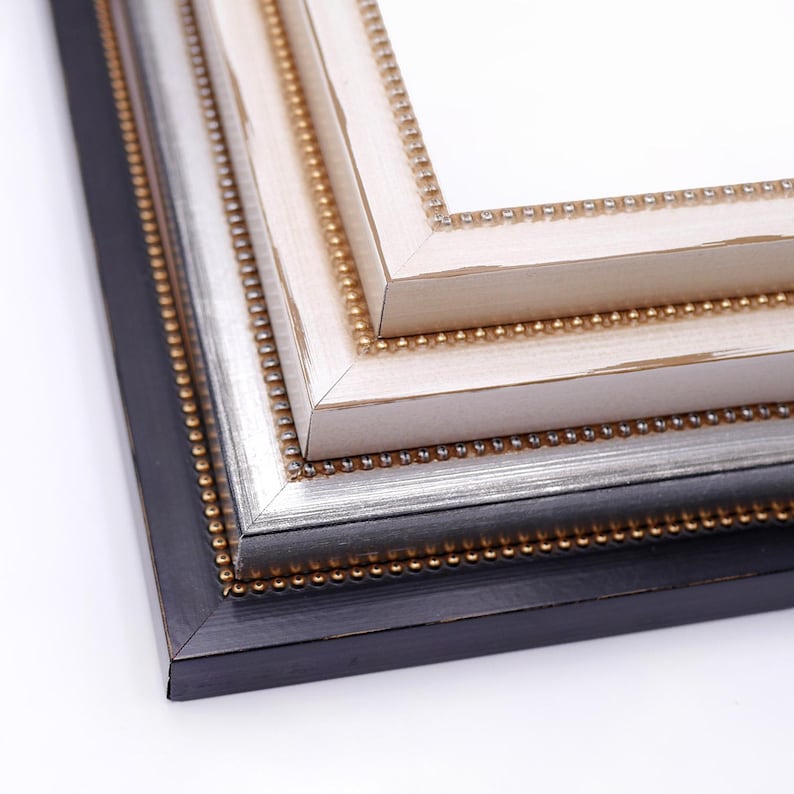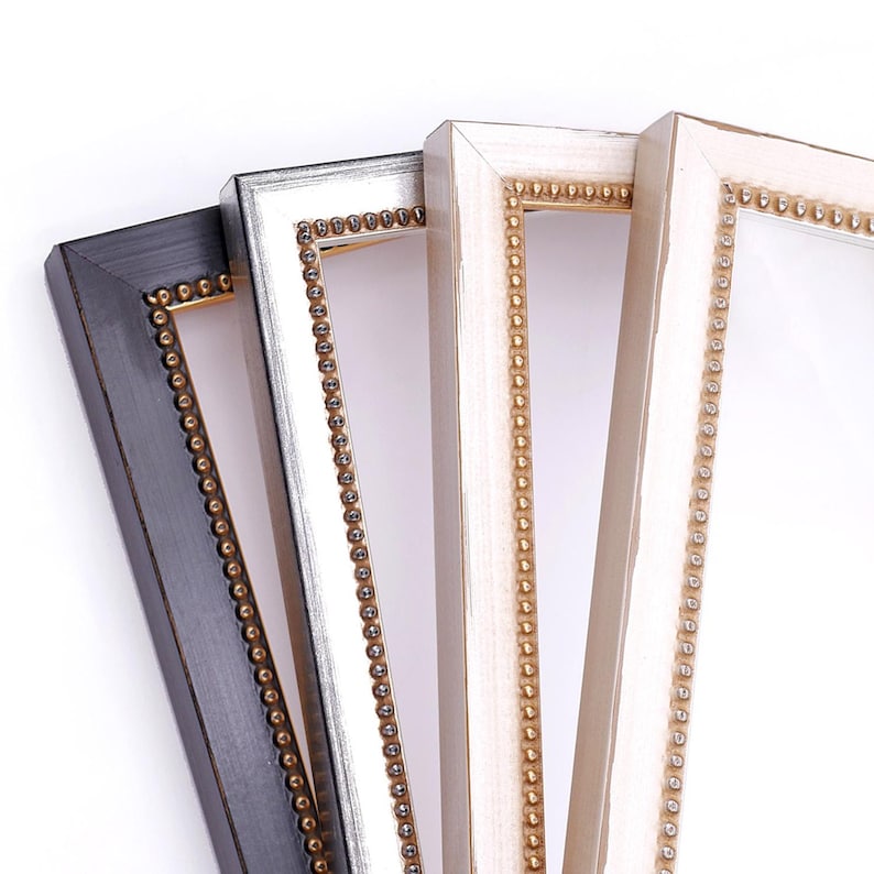 Beaded Wood Picture Frame, Handmade Custom Frame, Modern Frame, Black Silver Ivory Frame, Wall Decorations 5x7 8x10 11x14 up to 32x40
